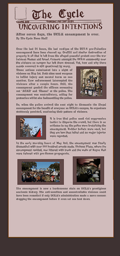 - Search through what has been left of the UCLA encampment on the morning of May 3rd. Remember its beauty with the assistance of student interviews.